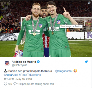 He kept a clean sheet as Diego Simeone’s side won the Europa League final 3-0 against Marseille on Wednesday.