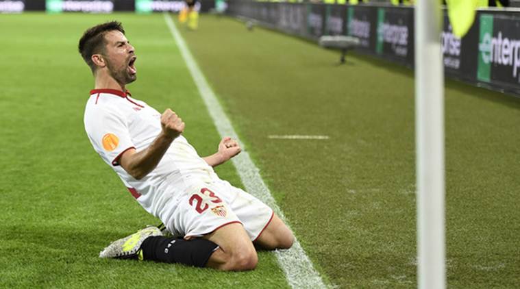 He also participated in Sevilla’s Europa League triumphs of the previous two years, scoring in the shootout win over Benfica in the 2014 final.