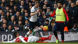 Alexis Sanchez’s 76th-minute equaliser gave Arsenal a point after two quick goals from Toby Alderweireld and Harry Kane had put Spurs in front following Aaron Ramsey’s opener and Coquelin’s dismissal.